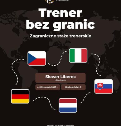 Jesteś ambitny, chcesz się rozwijać i poszerzać swoją wiedzę praktyczną oraz zdobywać bezcenne doświadczenie w pracy z dziećmi i młodzieżą w zagranicznej akademii Slovan Liberec? Ten staż jest dla Ciebie! Grupa „Nowe Projekty” Małopolskiego Związku Piłki Nożnej zaprasza trenerów, skautów oraz wszystkich zainteresowanych na staż trenerski w Czechach. Zapisy potrwają do 23 października – liczba miejsc jest ograniczona! Wyjazd rozpocznie się 4.11.2025 r. w godzinach przedpołudniowych, a zakończy […]